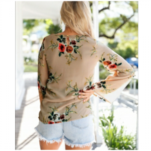 Nude long bell sleeve blossoming chiffon top