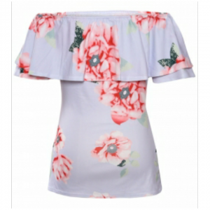 Baby blue ruffle off shoulder floral womens top