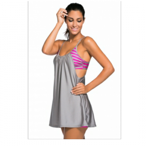 Grey flowing swim dress layered 1pc tankini top