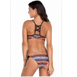 Ethnic printed strappy bikini swimsuit