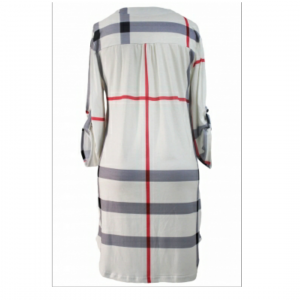 Gray plaid roll up sleeves arched hemline dress
