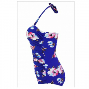 Floral print royal blue retro one piece swimsuit