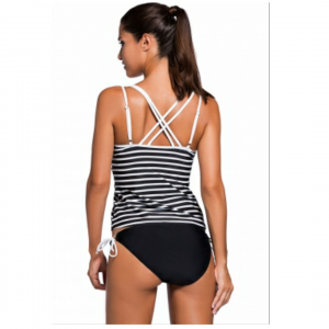 Black white straped strappy two piece swimsuit