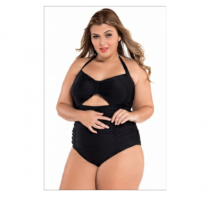 Black sweetheart neck ruched plus size one piece swimwear