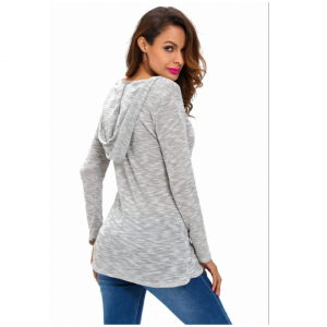 Grey hooded v neck long sleeve loose knitted top