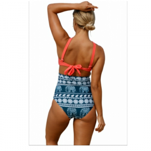 Orange cross front bikini vintage floral high waist swimsuit