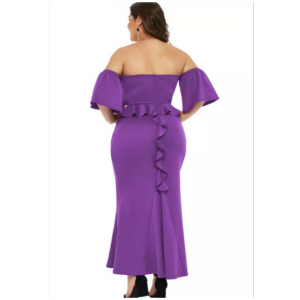 purple sexy strapless drop shoulder plus size maxi dress