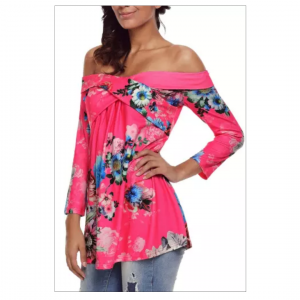 Rosy floral off shoulder crisscross top
