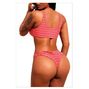 Red chevron striped 2pcs sporty swimsuit