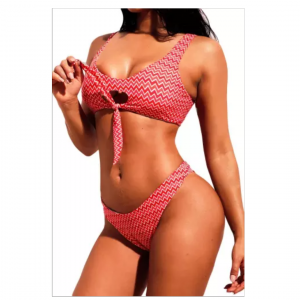 Red chevron striped 2pcs sporty swimsuit