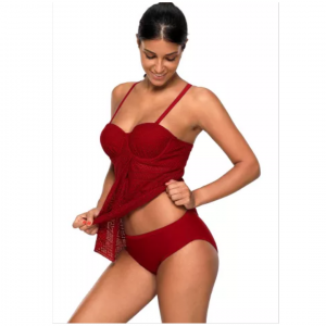 Burgundy lace flyaway underwired tankini bathing suit