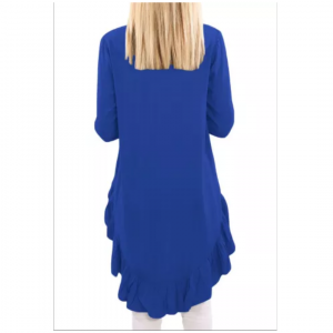 Blue v neck longer frilled hemline back top
