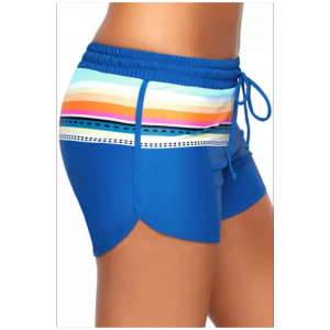 Striped print accent cobalt blue drawstring board shorts