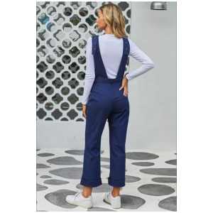 Blue straight leg high waist denim overall