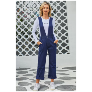 Blue straight leg high waist denim overall