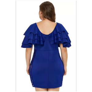 Blue cascading shoulder lace insert plus size dress
