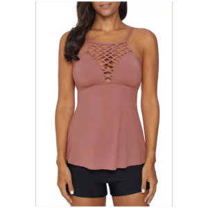 Gray netted hollow out tankini top