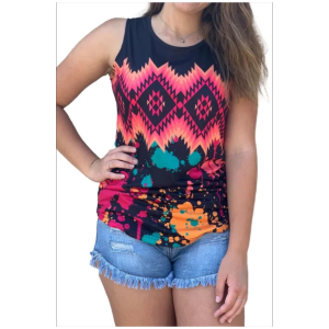 Tribal tie dye print tank top