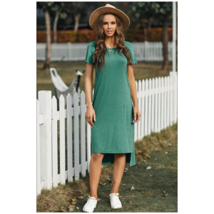 Green casual short sleeve t shirt midi dress with splits