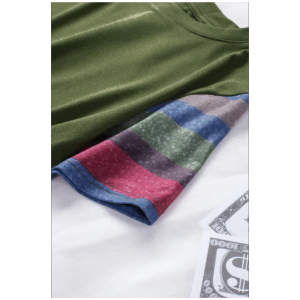 Army green girls striped sleeves tee