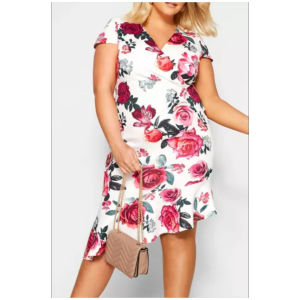 Short sleeve wrap v neck plus size floral midi dress