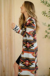 Green geometric color block open front long