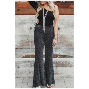 Black metallic shining flared pants