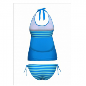 Layered tankini blue striped 2pcs bathing suit