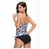 Abstract circle print halter tankini swimsuit