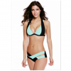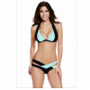 A color block design taken to a new level . the bathing suit top has a double strap design that will make you stand out.works equally good for small chested women who want to create cleavage and give the appearance of a bigger bust , and on bigger chested women who are in need of structure and support . the over shoulder feature ensures the weight of the top is carried by your shoulders and relieves pain at neck .not your ordinary bikini bottom ,the criss cross straps coupled with the color block combo create a unique swim bottom. not underwired . the bra padding is not removeable.