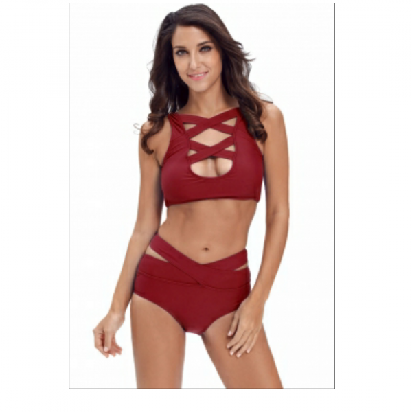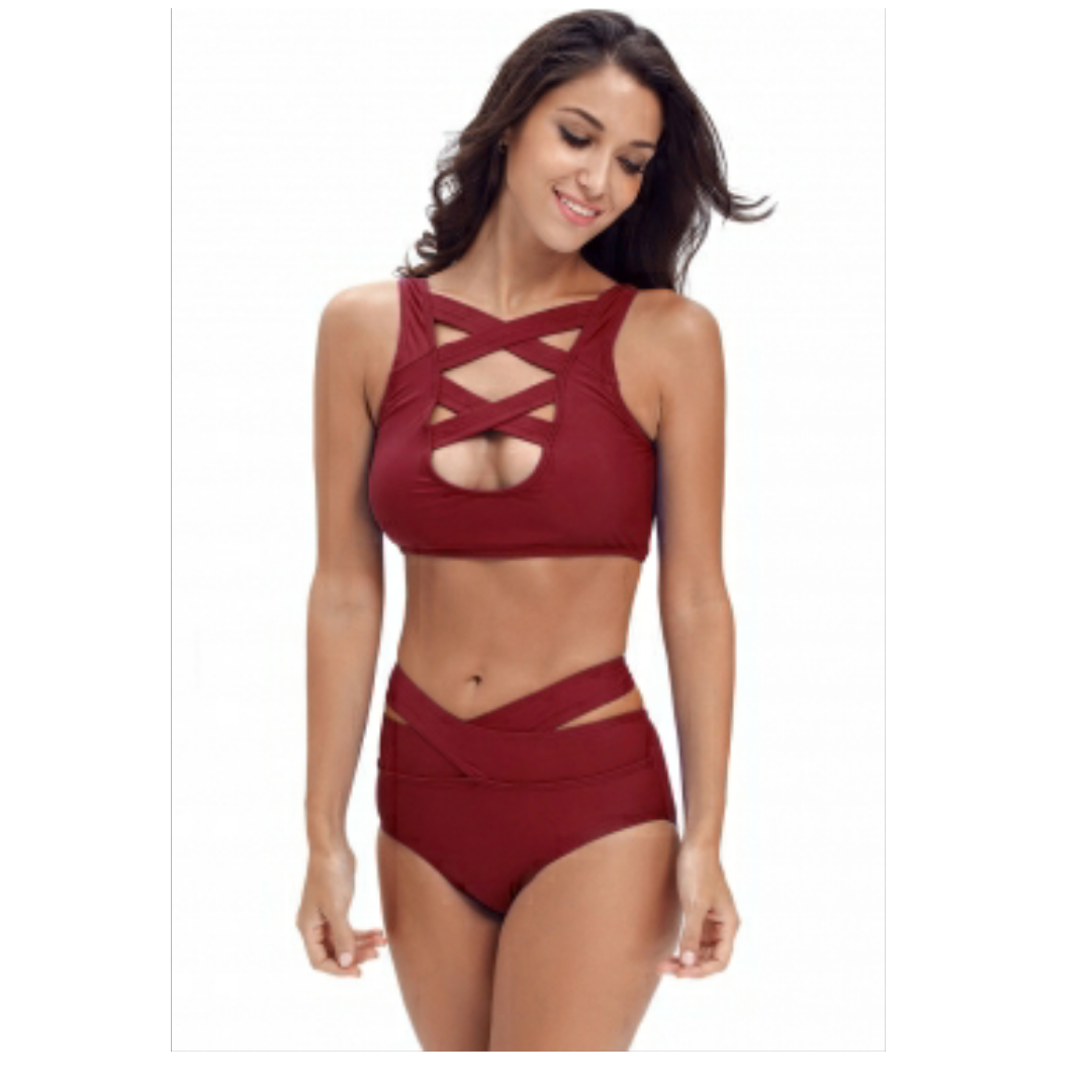 How cute is our brazil multiway strap high waist bikini? in the very popular high waisted style and is available in varied colors, it is sexy and cute. multiway front strap design and hollow out front bust, detachable padding and wireless, side cut out bikini bottom, full coverage and high rise that accentuate a flattering curve.