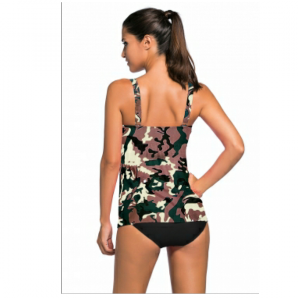 Camouflage print 2pcs swing tankini swimsuit