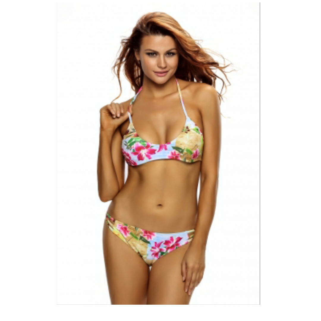 Fill your wardrobe with hot pieces like this girly print halter neck strappy bikini ,this is just what you need to spruce up your wardrobe,dress up in this bikini and make you looking sexy.