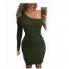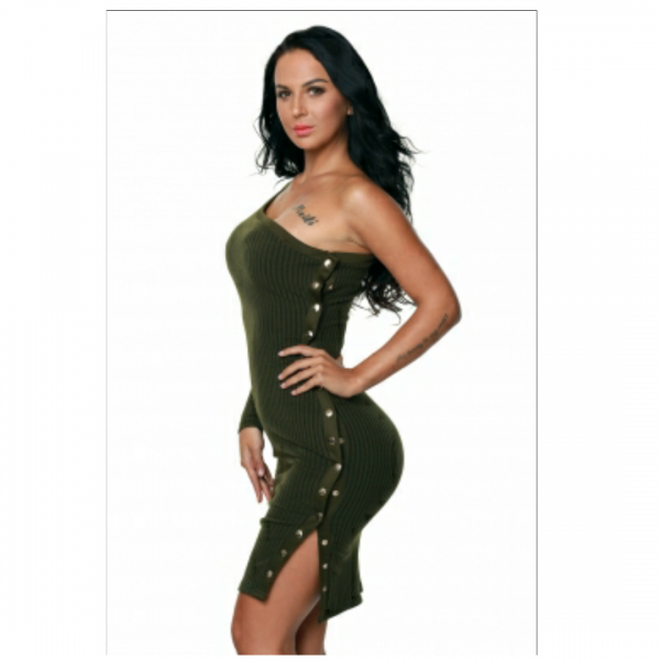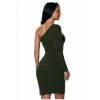 Green one sleeve asymmetric neckline ribbed bodycon dress