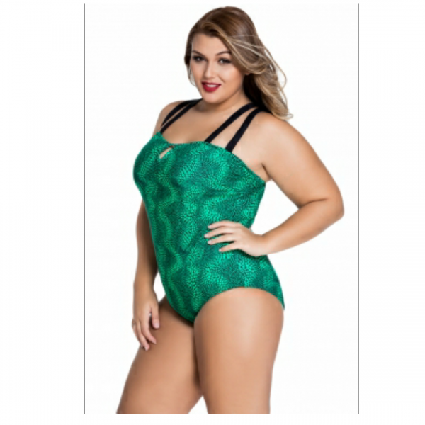 Green polka dot crisscross strap plus size