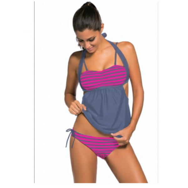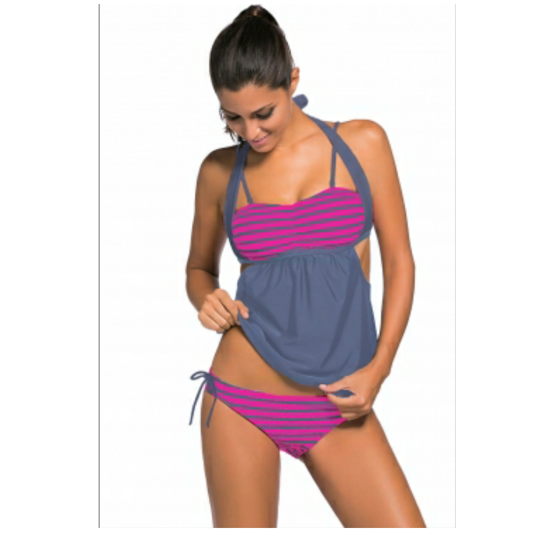 Versatility at its finest! the spliced tankini top features no underwire, removable soft cups, thick halterneck and an adjustable straps detail that creates custom fit for ultimate reinforcement. this tankini has the coverage you need, from yoga to your outdoor activities! and a matching cheeky bikini bottom. it is excellent for mixing and matching with solids. with moderate coverage, create a custom fit with its adjustable tie sides