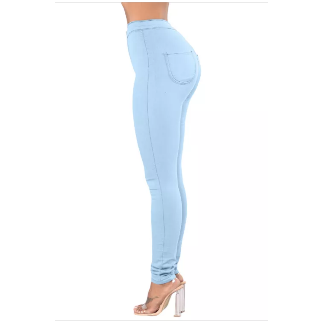 Light blue high waist skinny jeans with round pockets