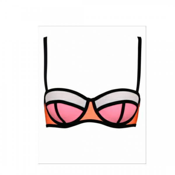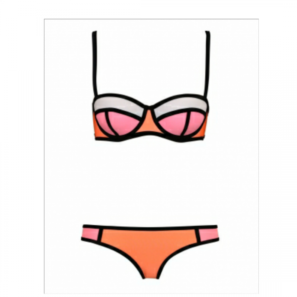 Structure neoprene color block swimsuit -new ,molded push up padding underwire , adjustable spaghetti straps and back hook closure swimsuit .chic neat trim meets bright color blocking for the beach ,pool or spring break /summer this year .the bottom is low rise and back coverage.a true eye catcher that will bring attention your way for those wanting to flaunt their sexy curves and figure on spring break/summer beaches pool party or vaca.