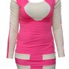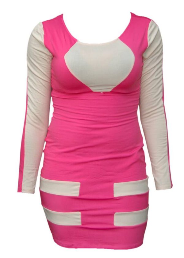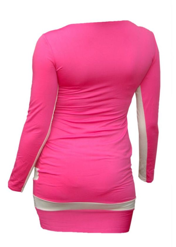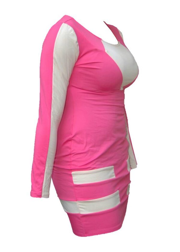 Catch attention with this bodycon dress , pink skintight body with contrasting color detail enhancing to show off a womans curves.long sleeves design ,this sexy dress is suitable for all cool seasons.