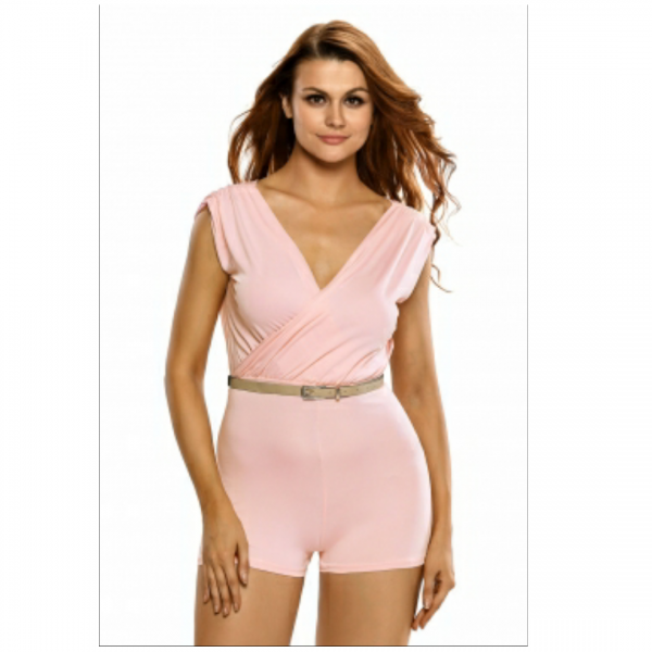 Pink ruffle top romper with belt