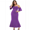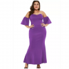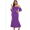 purple sexy strapless drop shoulder plus size maxi dress