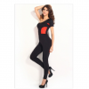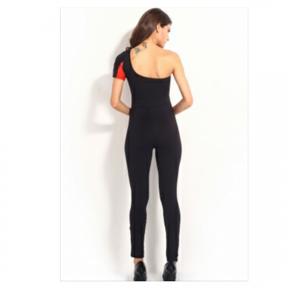 Red block stitching one shoulder jumpsuit
