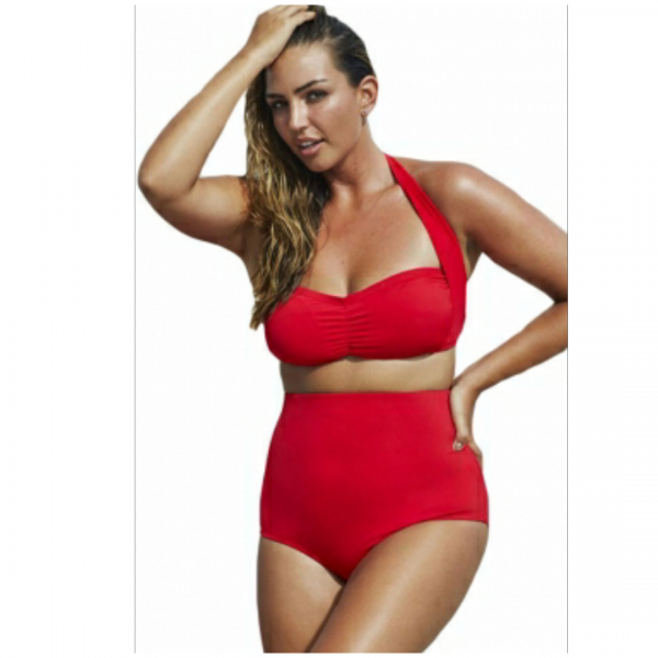 Red ruched top high waist plus size swimsuit