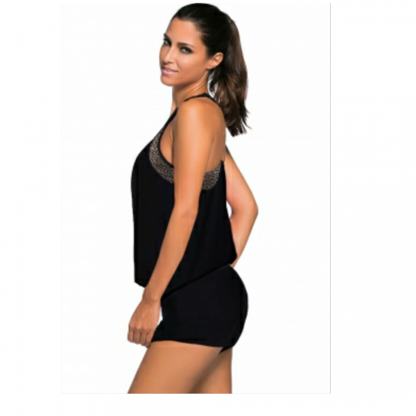 Create your personal summer beach collection . this tankini top is one of brand new designs highly recommended ,it has a relatively conversative secure silhouette by covering most of the body,scoop neck , detachable , padding , cool tank sleeveless and racer back style with contrast print inserts to look special. choose your swimwear bottom to complete a chic sexy appearance.
