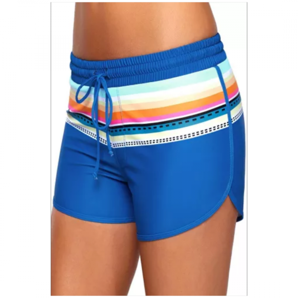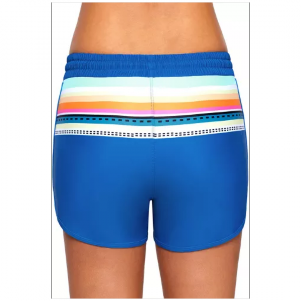 Striped print accent cobalt blue drawstring board shorts