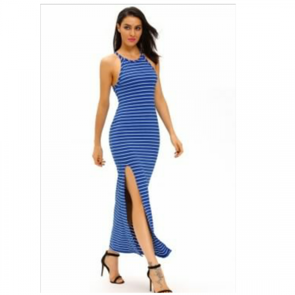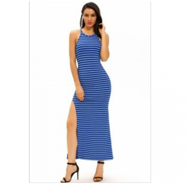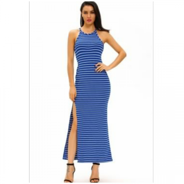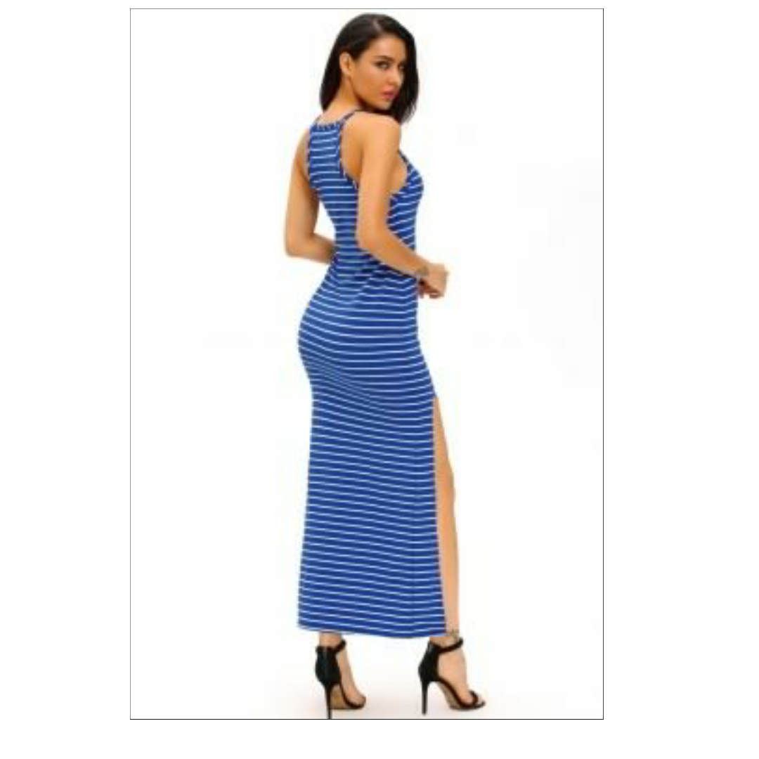 A very received long dress to spend a sexy cool summer holiday you are much – awaited . the fabric it made is breathe freely and sweater absorbent with contrast stripes print , tank silhouette with side slit to always show shapely leg , feature are look hourglass in this form – fitting stretch gown