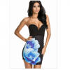 Work your angles in this sweetheart neck strapless print bodycon dress featuring a plunging sweetheart neckline with padded cups and a curved hemline , it is exquisitely detailed with fresh blue print , zip closure at back , and made by mega stretch fabric . an optimal dress for cheerful parties and romantic dates with your beloved.