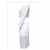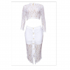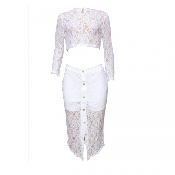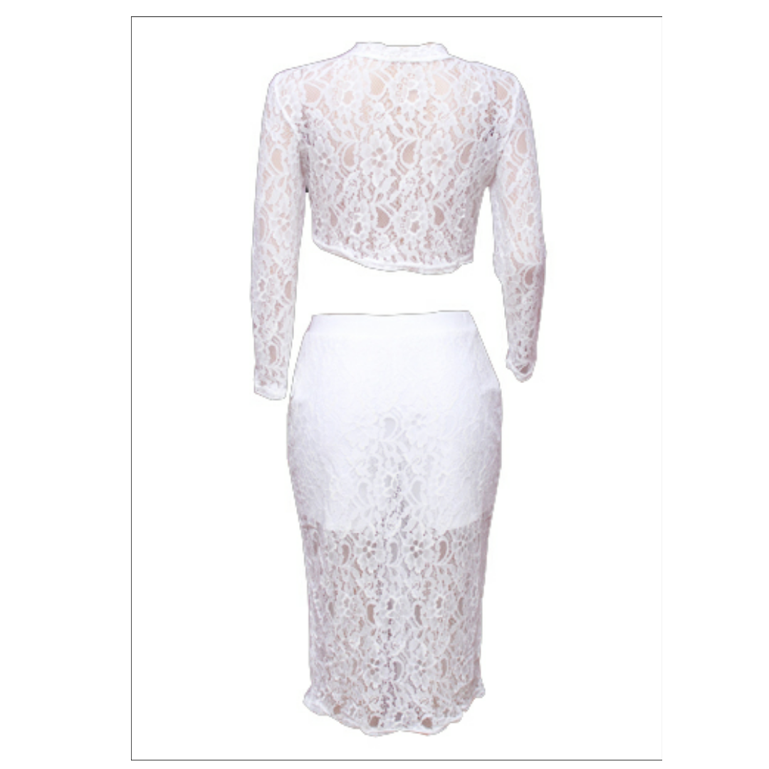 White sheer lace crop top midi split skirt set