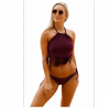 I bet you cant find any reason to escape from this stylish tankini bathing suit. you will feel its comfort once touch the excellent fabric, crop top in halter design, laser cutting pattern bodice and the fringed hemline is dramatic to turn heads. open back with ties. the swim bottom is filled with shimmring rhinestones front and back, adjustable ties on sides. show your passion and charm in this fringed beaded tankini swim set.