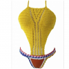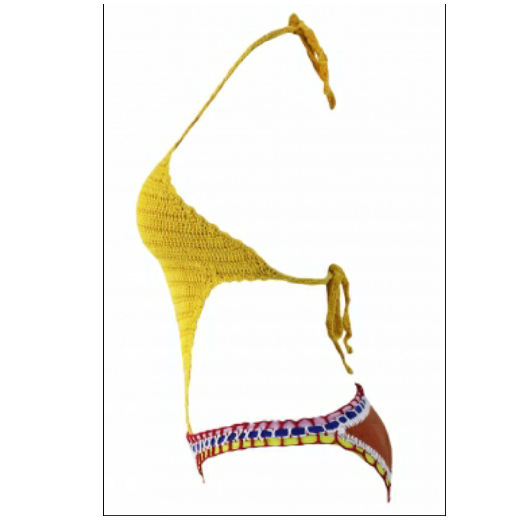 Yellow crochet bodice orange neoprene bottom monokini